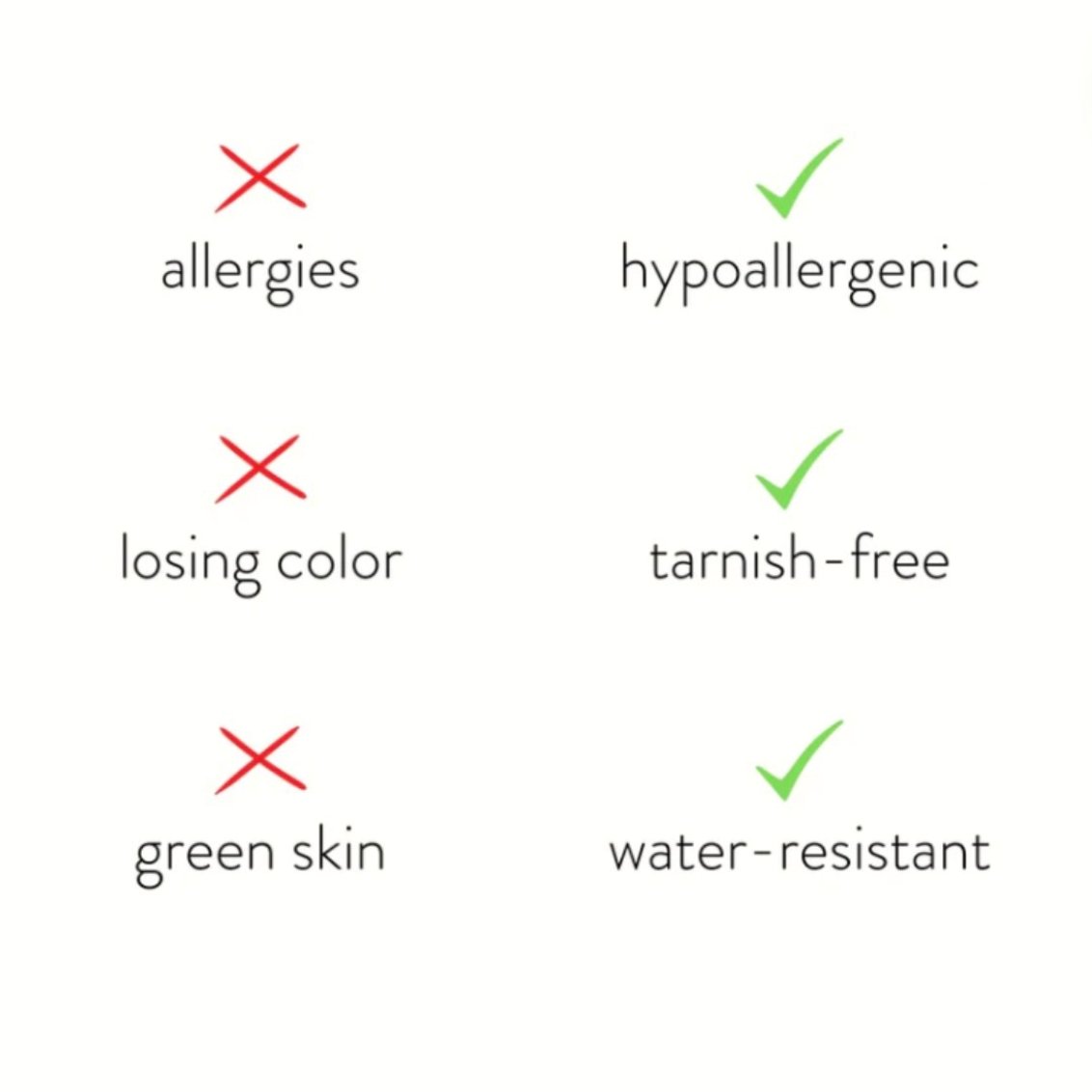 Made from waterproof stainless steel, you will never have to worry about your jewelry fading or tarnishing again.