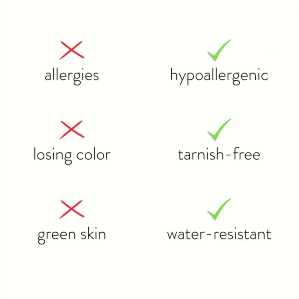 Made from waterproof stainless steel, you will never have to worry about your jewelry fading or tarnishing again.