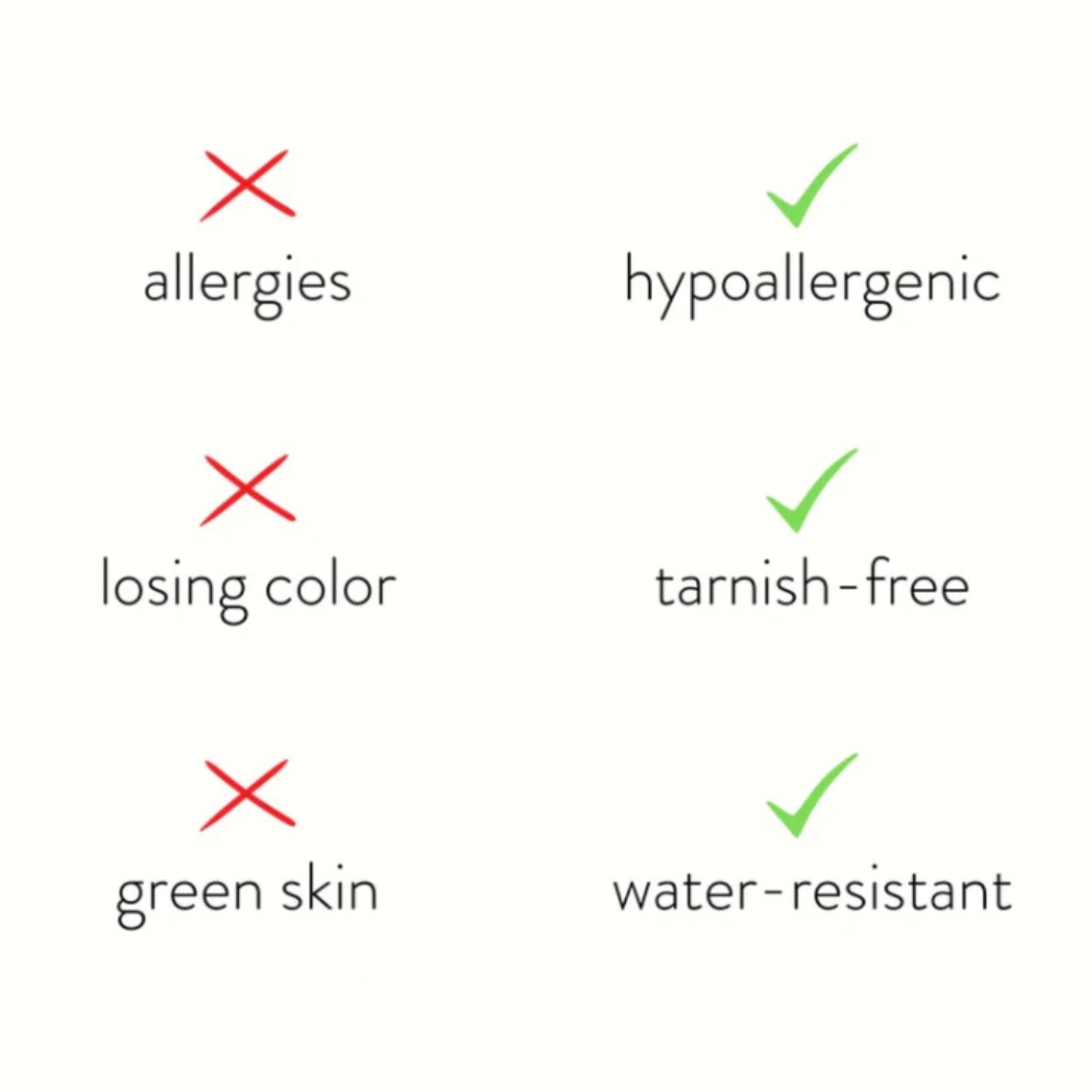 Made from waterproof stainless steel, you will never have to worry about fading or tarnishing jewelry again.